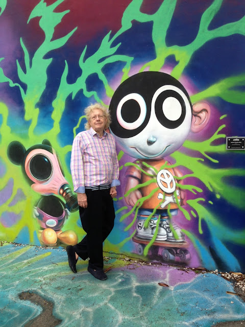 Angelo Donghia, sitting under one of his Richard Giglio works, via AD |